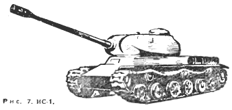В дальнейшем конструкторский коллектив под руководством Ж. Я. Котина, ныне генерал-полковника инженерно-танковой службы, Героя Социалистического Труда, продолжал работать над совершенствованием тяжелого танка. На смену танкам KB пришел ИС-1 (рис. 7), а затем ИС-2 и ИС-3.