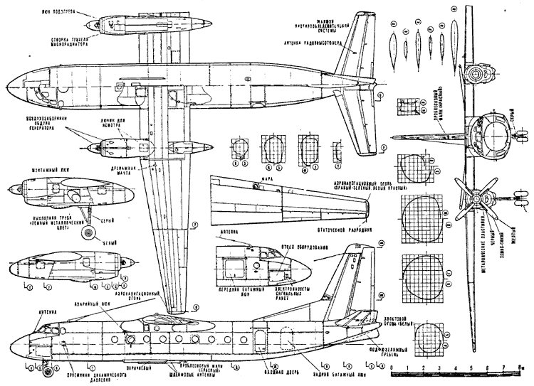МЛАДШИЙ БРАТ ИЗ СЕМЕЙСТВА АНОВТурбовинтовой самолет АН-24Б (см. рисунки на 2-3-й стр. вкладки) создан коллективом под руководством генерального конструктора О. К. Антонова. Лайнер имеет отличные аэродинамические формы. Он предназначен для пассажирских и грузовых перевозок на линиях малой и средней протяженности (от 200 до 2000 км) и заменил на местных и магистральных воздушных линиях самолеты ЛИ-2 и ИЛ-14 с поршневыми двигателями.