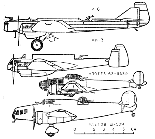 Площадь его крыла конструктор сократил в полтора раза по сравнению с Р-6, и скорость МИ-3 превысила 350 км/ч. Однако самолет имел много недостатков, долго доводился и в серию так и не пошел.