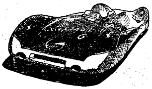 РЕКОРДНО-ГОНОЧНЫЙ АВТОМОБИЛЬ “ЗВЕЗДА-ЗМ” 1 — контур кузова, 2 — жалюзи радиатора, 3 — радиатор. 4 — колесо, 5 — сошка рулевого механизма, f — — рулевой вал, 7 — рычаг переключения передач, 8 — рычаг ручного тормоза, 9 — приборный щиток (справа и слева — термометры; в центре — тахометр, окраска заштрихованных зон красная, справа внизу, — манетка воздушного корректора карбюратора), 10 — сиденье гонщика, 11 — трубопровод системы охлаждения, 12 — двигатель, 13 — маслобак для принудительной смазки трансмиссии, 14 — картер главной передачи, 15 — коробка передач, 16 — кронштейн крепления переднего моста, 17 — передний мост, 18 — цилиндр подвески типа “дюбоне”, 19— передние топливные баки, 20 — магнето, 21 — водяной насос системы охлаждения, 22 — задние топливные баки, 23 — выхлопной патрубок, 24 — пружина подвески заднего моста, 25 — задний мост, 26 — рама, 27 — узел крепления днища кузова к раме. |